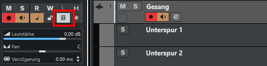 Klicke auf das Symbol „Unterspur anzeigen“.